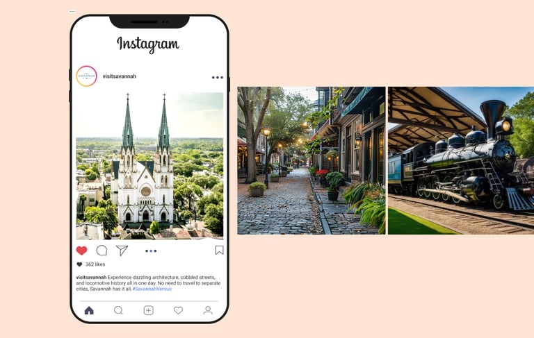 In an Intro to Advertising course, a partner and I were tasked with creating a campaign for Visit Savannah. We created "Savannah Versus," in which we highlighted Savannah's dominance in historical and aesthetic tourism.